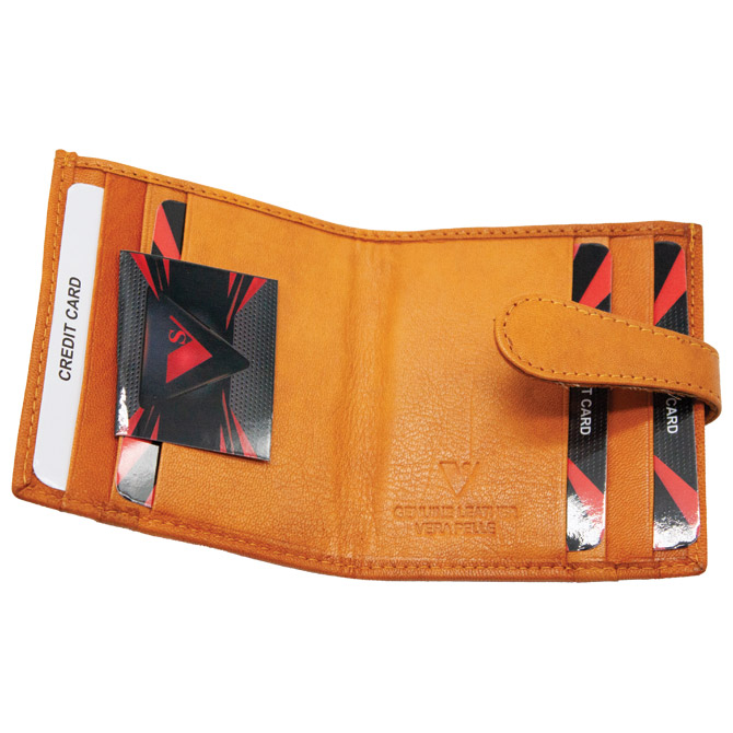 usnje kapaciteta: 12 kartic dimenzije: 8,5 x 9,7 cm zapiranje z gumbi