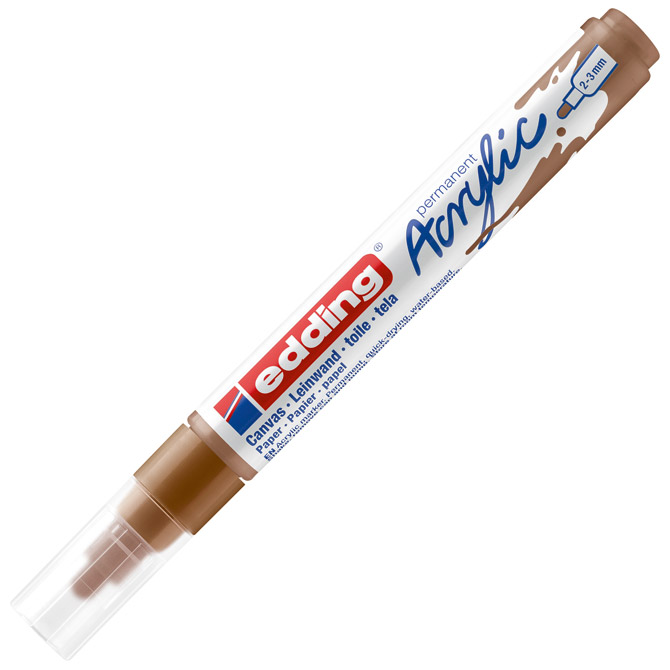 trajno, pigmentirano okrogel vrh širina tiska: 2-3 mm odporen je na: vodo, brisanje in svetlobo primerno za: platno, papir, karton in les šibak vonj se hitro suši (zato je primerna za levičarje)