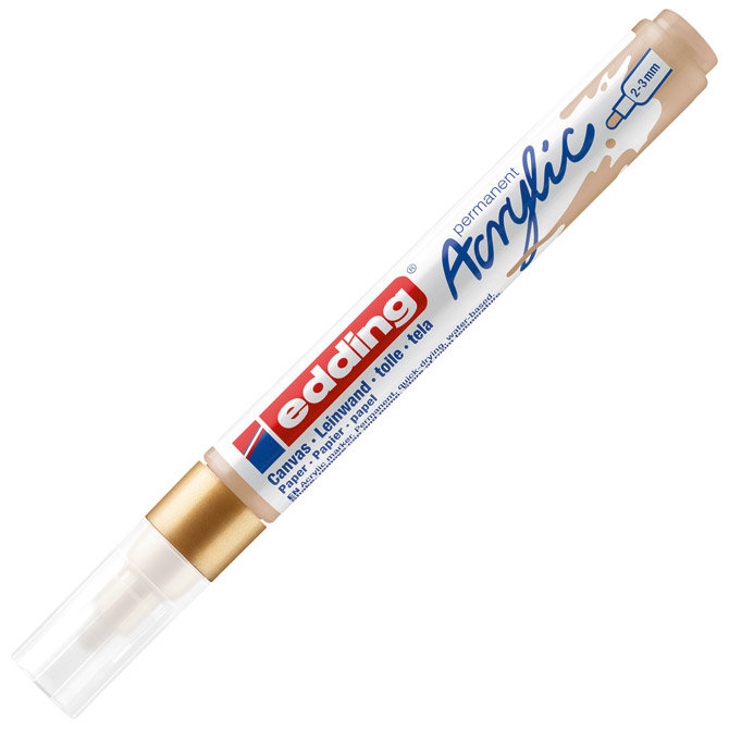 trajno, pigmentirano okrogel vrh širina tiska: 2-3 mm odporen je na: vodo, brisanje in svetlobo primerno za: platno, papir, karton in les šibak vonj se hitro suši (zato je primeren za levičarje)