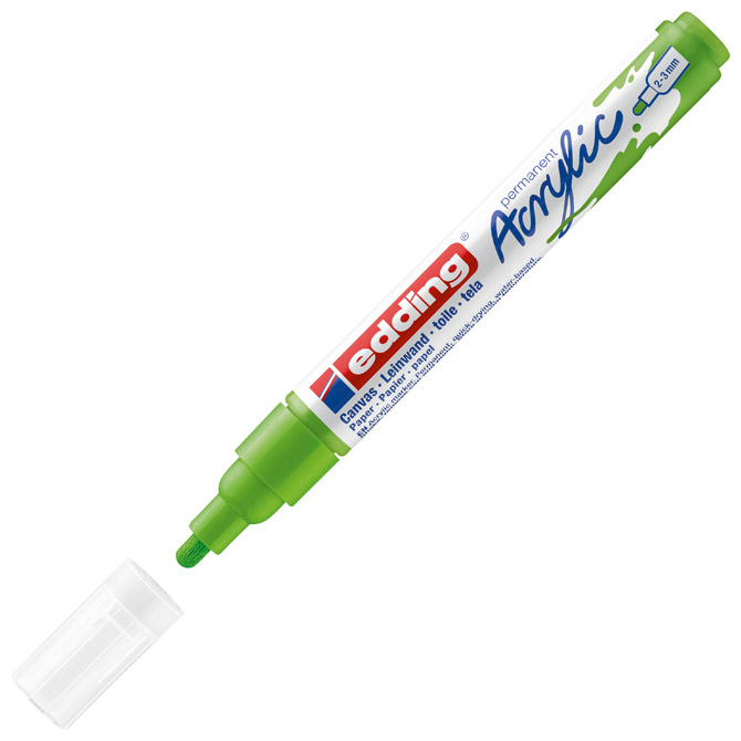 trajno, pigmentirano okrogel vrh širina tiska: 2-3 mm odporen je na: vodo, brisanje in svetlobo primerno za: platno, papir, karton in les šibak vonj se hitro suši (zato je primerna za levičarje)