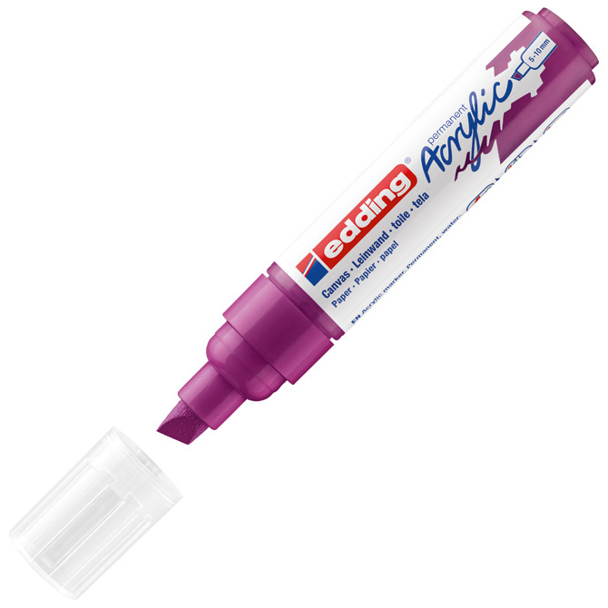 trajno, pigmentirano klinasti vrh širina tiska: 5-10 mm odporen je na: vodo, brisanje in svetlobo primerno za: platno, papir, karton in les šibak vonj se hitro suši (zato je primerna za levičarje)
