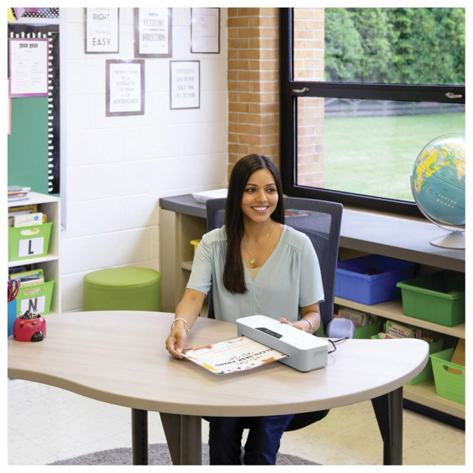 plastificira dokumente do formata A4 (maksimalna širina 240 mm) vsebuje: 2 valjčka folija: 80 in 125 mikronov (debelina folije se izbere s pritiskom na gumb) čas segrevanja 3 minute plastificira tudi fotografije 2 nastavitvi temperature za toplo in hladno plastificiranje vzvod za sprostitev zagozdenega nastavka Tehnologija toplotne zaščite HeatGuardTM (dvojna izolacija ohišja za ohranjanje toplote znotraj mehčala, medtem ko zunanja površina mehčala med uporabo ostane hladna) Osvetljeni gumbi na dotik za lažjo izbiro funkcij samodejni izklop plastifikatorja po 30 minutah zaradi varčevanja z energijo v paketu je tudi cca 10 folij za kaširanje dimenzije: 342x110x75 mm teža: 1,4 kg 2 leti garancije