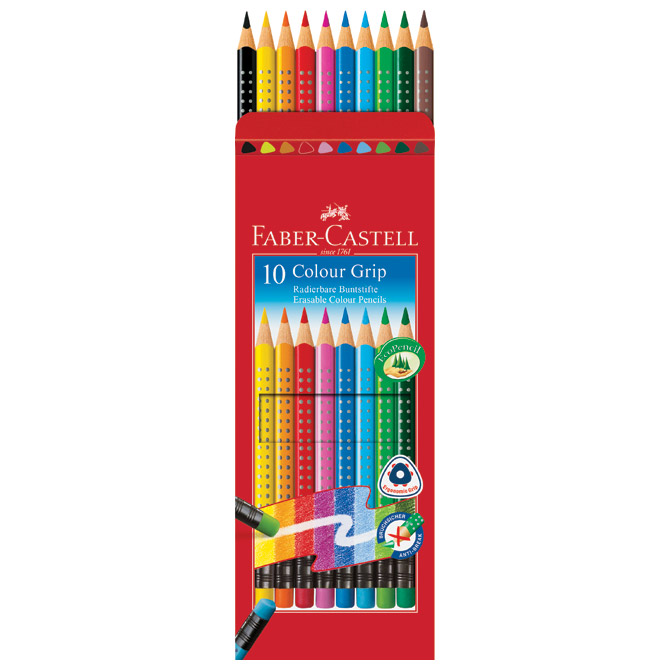 Barvice 10 barv z radirko Grip 2001 Faber-Castell 116613 blister