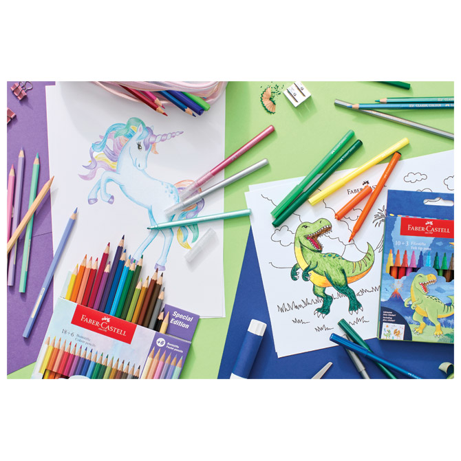 Lesene barve 10 barv + 3 lesene barve Dino Faber Castell 111213 blister