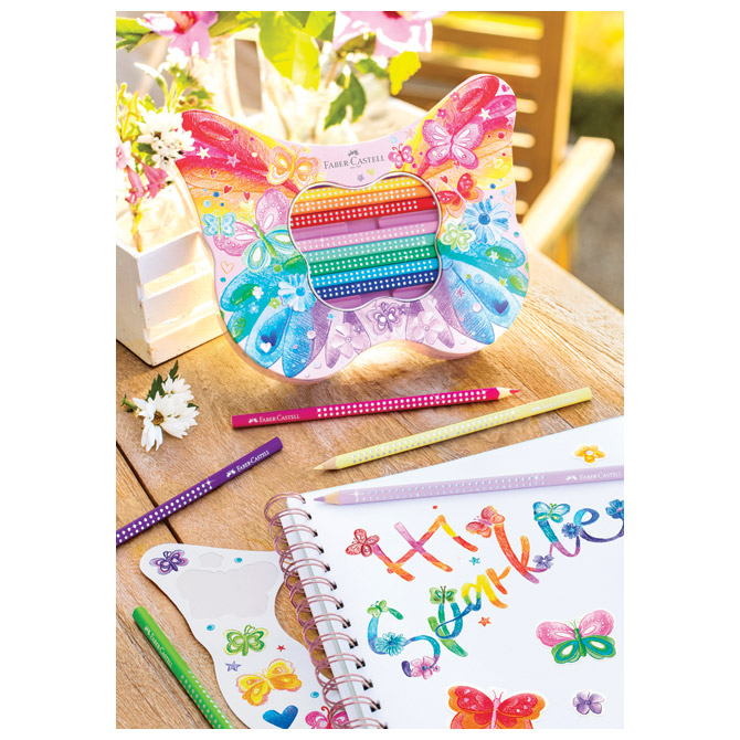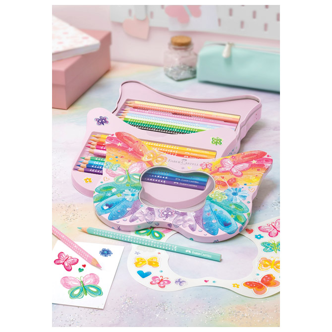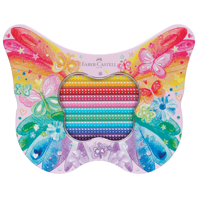 Lesene barve 20 barv kovinska škatla Sparkle Butterfly Faber Castell 201971