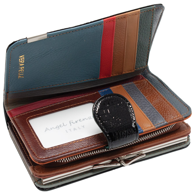 usnje ženska lakiran predal za drobiž in kartice zapiranje z zadrgo, gumbom in zaponko dimenzije: 16x10 cm v darilni škatli
