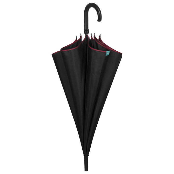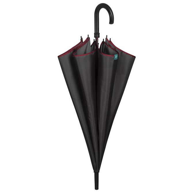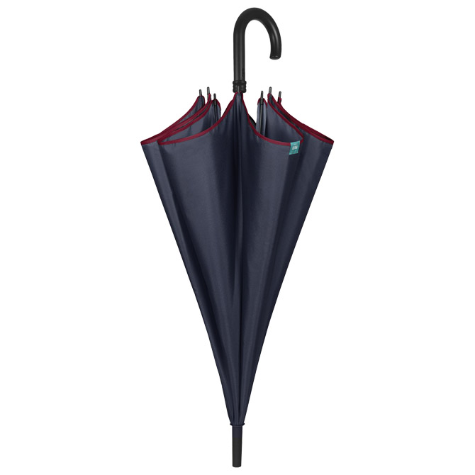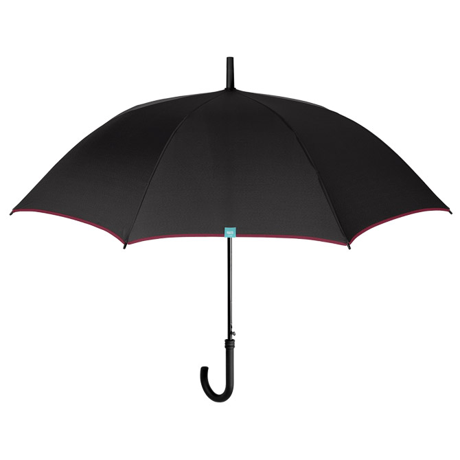 samodejno s plastičnim ročajem polmer zaprtega dežnika: 65 cm 8 plošč višina: 116 cm odporen proti vetru žice iz steklenih vlaken iz mikrovlaken (odbija dežne kaplje in se hitro suši) 3 barve: črna, modra in siva (z bordo robom platna)