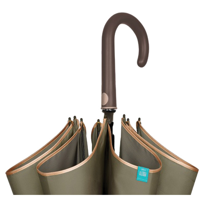 avtomatsko s plastičnim ročajem polmer zaprtega dežnika: 61 cm 8 panelov višina: 102 cm žice iz steklenih vlaken odporen na veter iz mikrovlaken (odbija dežne kapljice in se hitro suši) 3 barve zlati rob
