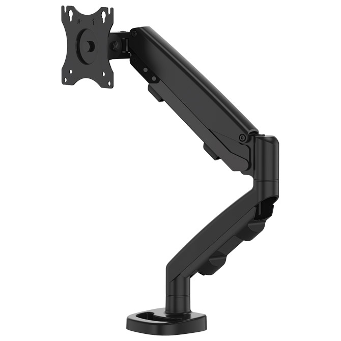 kovinska roka z nastavljivo višino drži en monitor do 8 kg in do 40" razpon višine: 14-40,6 cm največja velikost zaslona: 39" (99,06 cm) največji doseg: 53,8 cm vrtenje držala: 360° nagib zaslona: +/- 90° VESA: 75x75/100x100 raven gibanja: vir plina vgrajeno upravljanje kablov hitra montaža nastavitev plinske vzmeti z dotikom prsta pomaga zmanjšati obremenitev oči, vratu in hrbta ter omogoča udobno delo neodvisno testiran za izpolnjevanje ergonomskih zahtev, določenih v evropski zdravstveni in varnostni zakonodaji: EN ISO 9241-5 dimenzije: 48x11,7x57,5 cm teža: 2,99 kg