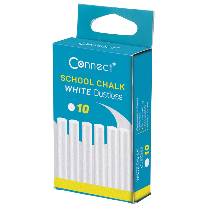 Šolska kreda okrogla brez prahu fi-10mm pk10 Connect white blister