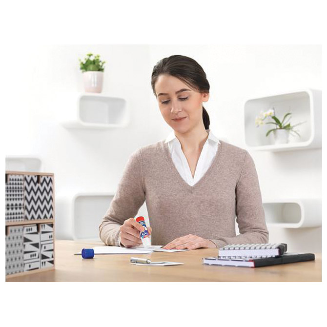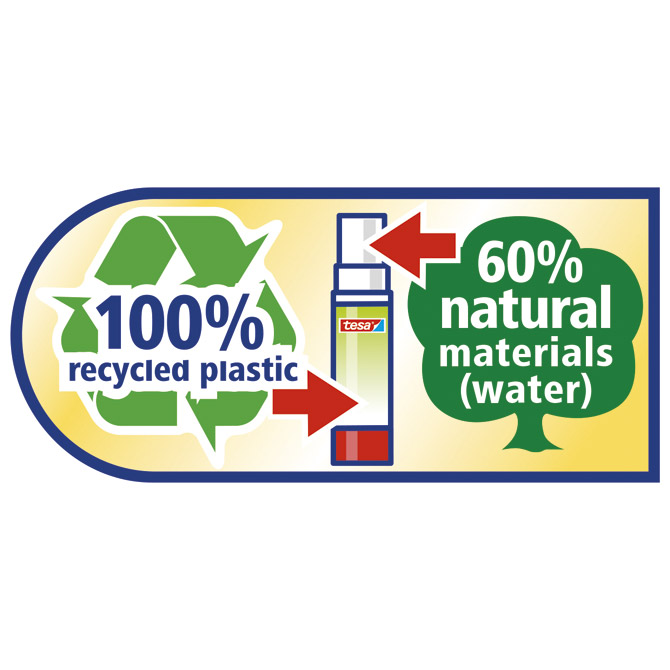 brez topil formula lepila je sestavljena iz 60% naravnih sestavin (vključno z vodo) lep papir, karton in fotografije brez vonja enostaven za uporabo ima praktično prevleko, ki preprečuje kotaljenje lahko perete ročno embalaža je izdelana iz 100% reciklirane plastike 10 let