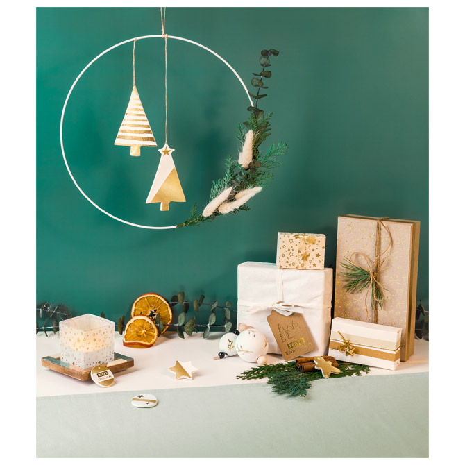 Dekorativni lepilni trak 12 mm x 3 m Novoletni vzorec pakiranje 5 Heyda 20-35845 38 zlatih blister
