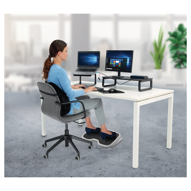 nastavljiv nagib za 15 stopinj za pravilen položaj gležnjev izboljša cirkulacijo v nogah in držo razbremeni pritisk v bokih in spodnjem delu hrbta dimenzije: 45 x 35 cm