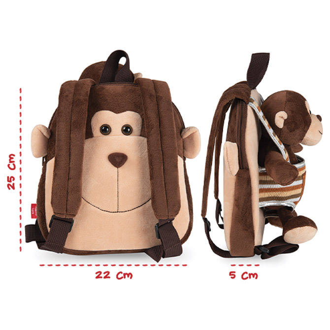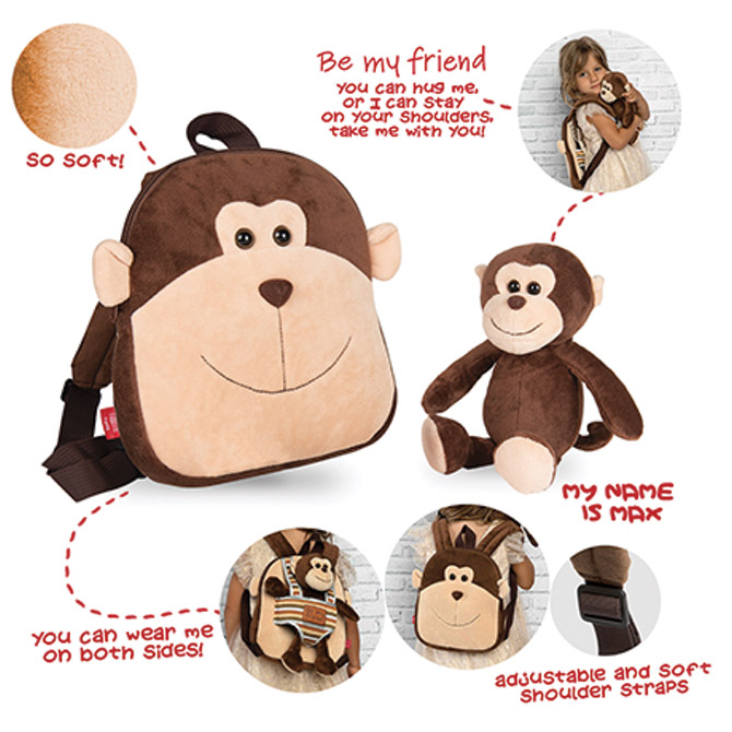 Dvostranski mini nahrbtnik s snemljivo plišasto opico Max Monkey Perletti 13031