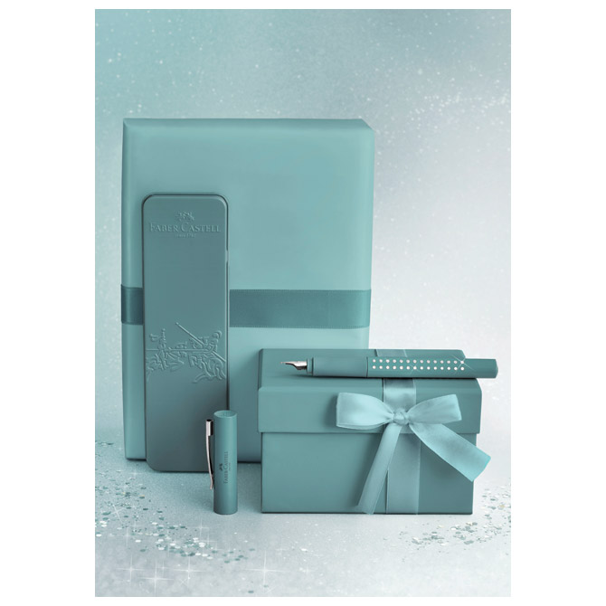 Nalivno pero z bleščicami (M) v kovinski škatli Faber Castell 201516 kovinsko turkizna