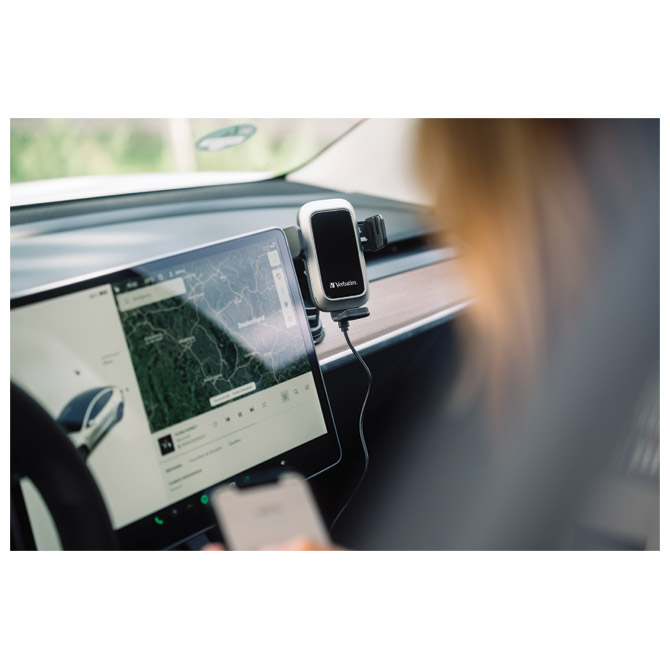 brezžični polnilnik za telefone s podporo Qi Qi certifikat samonastavljiva tuljava = pametno prepoznavanje površina iz kaljenega stekla samodejno odpiranje/zaklepanje tri možnosti pritrditve: nosilec za prezračevalni ventil, nosilec za vakuumsko pritrditev na armaturno ploščo ali nosilec za vetrobransko steklo Izhod: nastavitev 15 W/10 W/7,5 W/5 W 360° vrtenje mehur