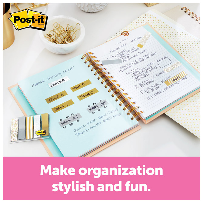 dimenzije: 11,9x43,2 mm 5 barv x 20 zastav poliester možnost ponovne uporabe za označevanje strani in dokumentov barve: bela s srebrnimi pikami, bela z zlatimi pikami, bela z zlatimi črtami, srebrna in zlata pretisni omot