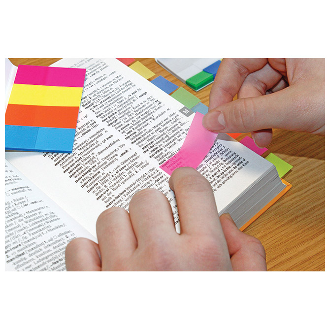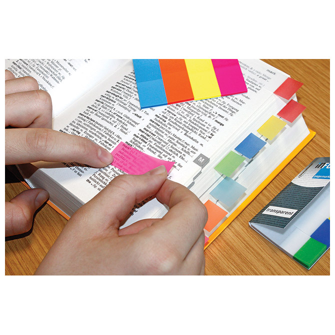dimenzije: 20x50 mm 4 barve x 40 zastav poliester možnost ponovne uporabe za označevanje strani in dokumentov pretisni omot