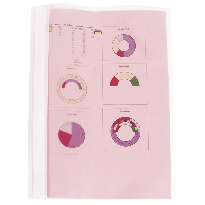 format: A4 dimenzije: 225x310 mm PP mehanika: 8 cm sprednja stran prozorna (120 mikronov), zadnja barva (172 mikronov) dolžina pisala: 14,5 cm