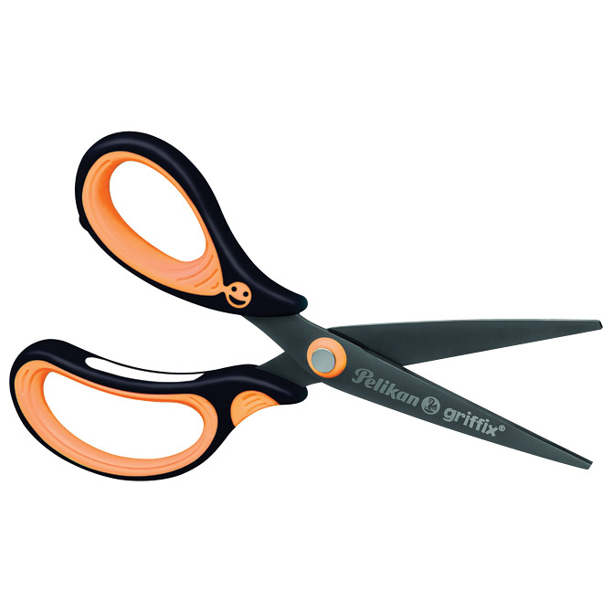 Šolske škarje 15 cm za levičarje Griffix Pelikan 819176 neon oranžno/črn blister