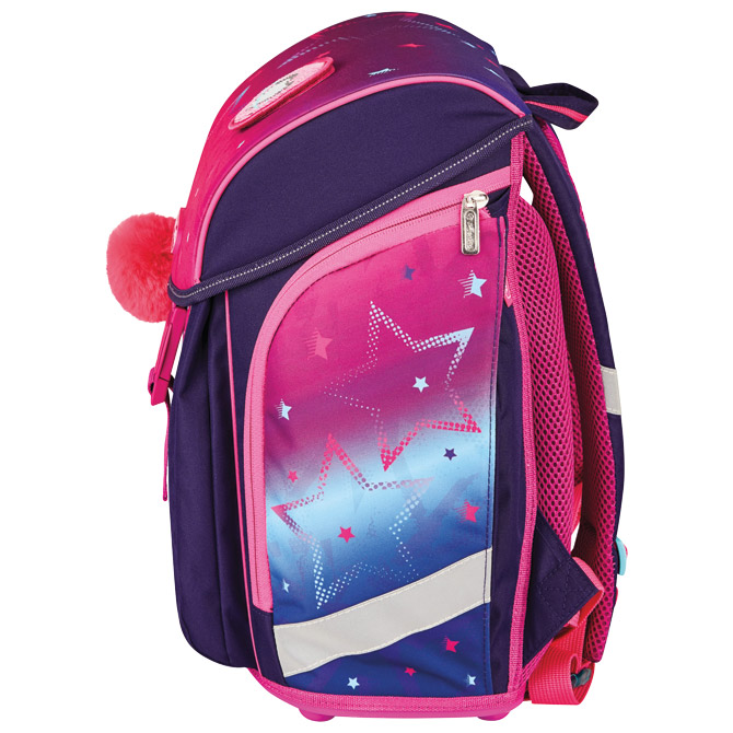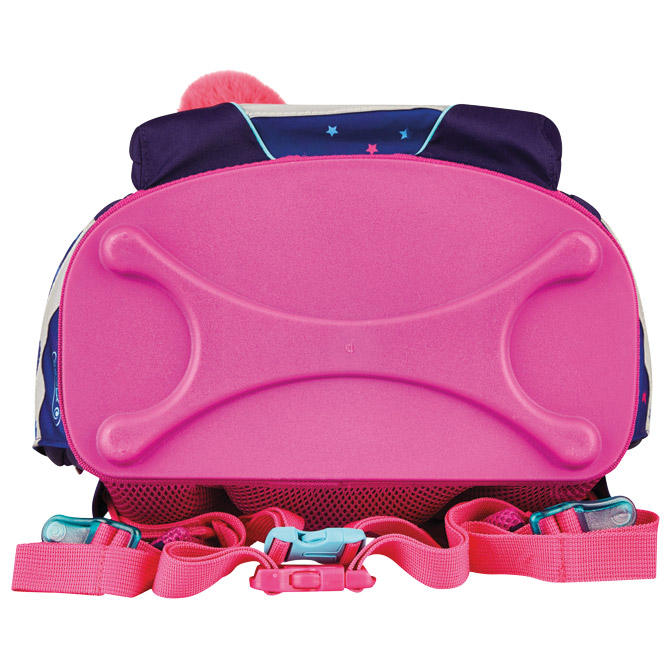 vsebuje: šolsko torbo (dimenzije: 29x36x21 cm) teža: 950 g Ergonomsko oblikovan hrbtni del omogoča pretok zraka nastavljivi trakovi nastavljiv prsni trak (odstranljiv) magnetna zaponka (Fidlock) odsevni trakovi vodoodporen material velik notranji predal s posebnim predalom za knjige žepi ob straneh Pokrov ima motiv ježka. 1 roza pompom) vreča za truplo, peresnica s 16 kosi dodatkov in okrogla peresnica