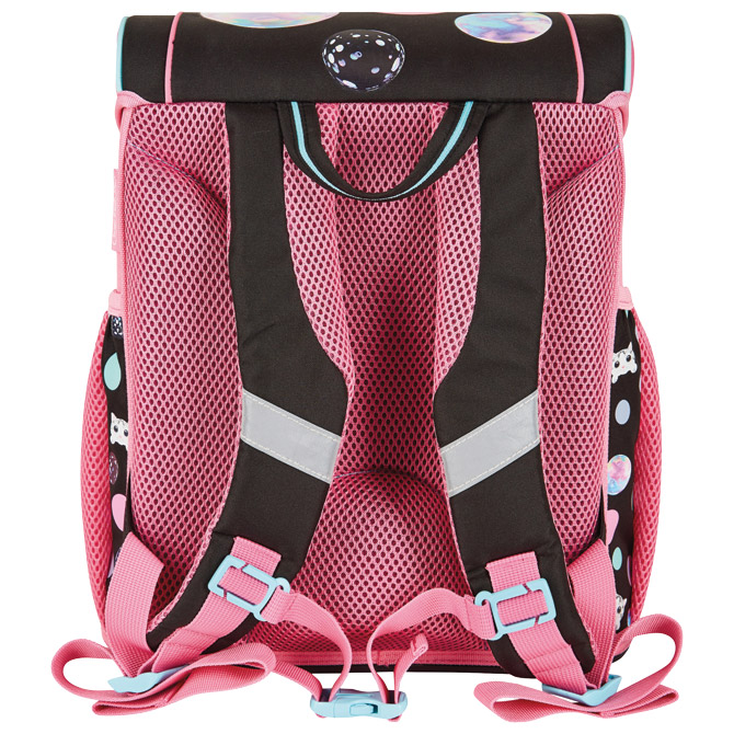 dimenzije: 37x31x22 cm teža: 900 g prostornina: 15 l Ergonomsko oblikovan hrbtni del omogoča pretok zraka nastavljivi trakovi zapenjalno sponko na klik 3M odsevni trakovi vodoodporen material velik notranji predal s posebnim predalom za knjige 1 sprednji žep in 2 stranska žepa