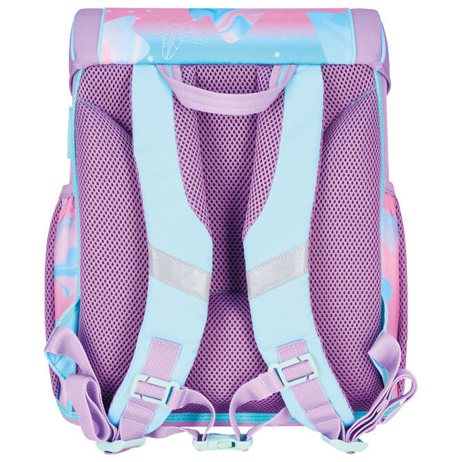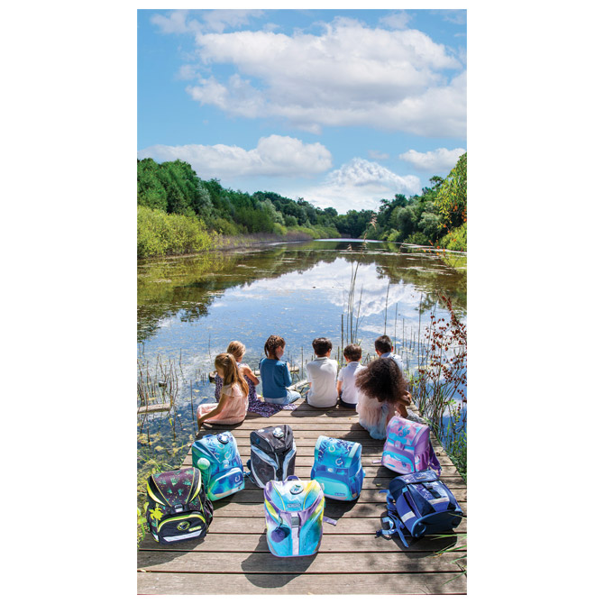 dimenzije: 37x31x22 cm teža: 900 g prostornina: 17 l Ergonomsko oblikovan hrbtni del z mrežasto tkanino za maksimalen pretok zraka nastavljivi trakovi odsevna zaponka na klik prsni pas z nastavljivo višino stabilna spodnja plošča odsevni material velik notranji predal s posebnim predalom za knjige 1 sprednji žep in 2 stranska žepa