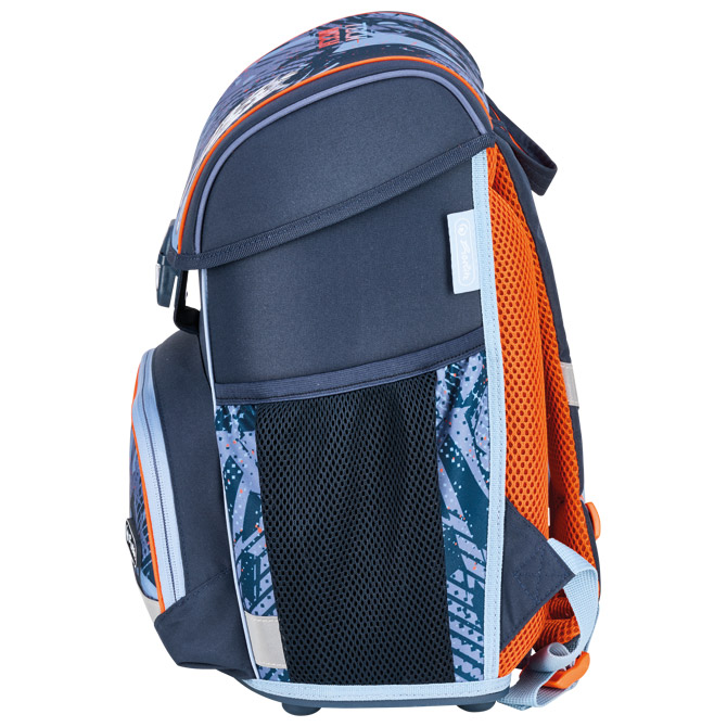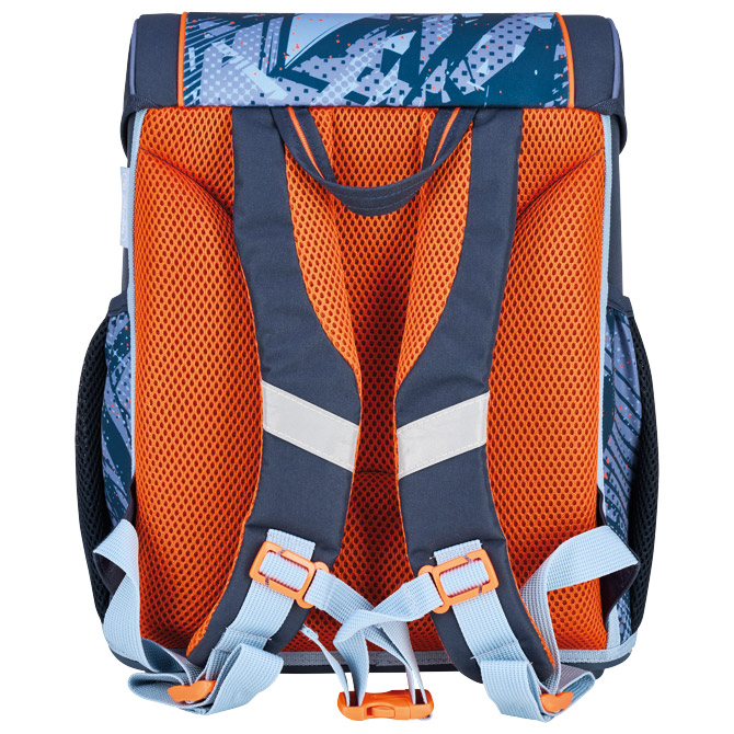 dimenzije: 37x31x22 cm teža: 900 g prostornina: 17 l Ergonomsko oblikovan hrbtni del z mrežasto tkanino za maksimalen pretok zraka nastavljivi trakovi odsevna zaponka na klik prsni pas z nastavljivo višino stabilna spodnja plošča odsevni material velik notranji predal s posebnim predalom za knjige 1 sprednji žep in 2 stranska žepa