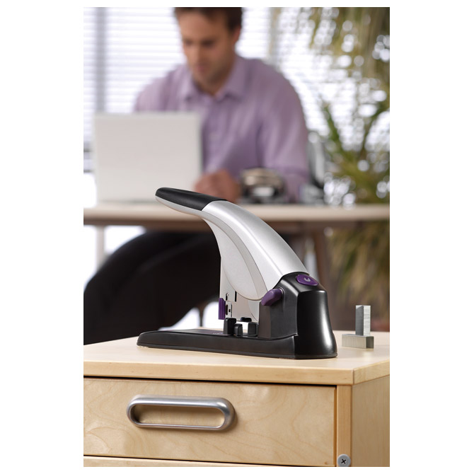 namizje kovinski spaja do 12 mm debeline ali 120 listov 80 g/m2 papirja priključna globina 56 mm povezava: zaprt klin sponke: Mercury 2500 (priložena je 1 škatla s 400 sponkami Mercury) gumb za sprostitev zagozdenih sponk garancija 5 let