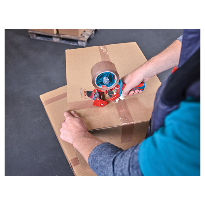 priročnik za trakove do 50 mm x 66 m gumiran ročaj zaščiten nož reguliran tlak rezi in ojačani trakovi