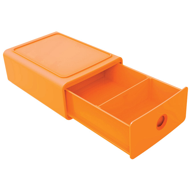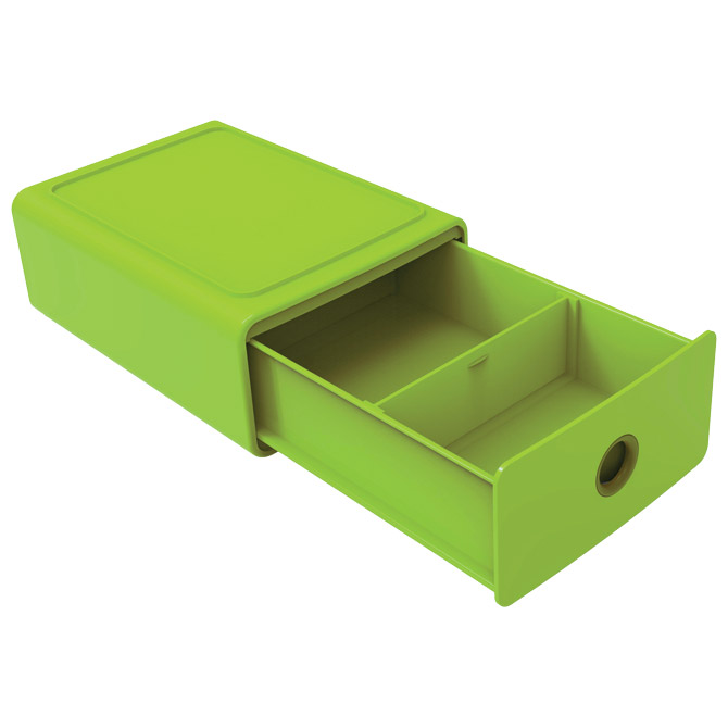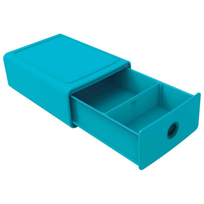 Barvita in energična ponudba, ki bo vašemu delovnemu prostoru dala živahno plat, ki mu je manjkala, in omogočila več ustvarjalnosti. Ti izdelki so okolju prijazni, izdelani iz recikliranih gospodinjskih plastičnih odpadkov in imajo certifikat Blue Angel. Modul za arhiviranje Tiny Box je zelo vsestranski, saj ponuja en modularni predal za shranjevanje, ki ga je mogoče zložiti v drugega za razvrščanje dokumentov A5+, posode, zvezkov, elastičnih žepov, pisarniških potrebščin ali celo ličil. Organizirali boste lahko svoj delovni prostor, univerzitetno spalnico, kuhinjo ali kopalnico. Zato je primeren za uporabo na delovnem mestu, v hibridni pisarni, doma ali v šoli. Škatla je zasnovana z enodelnim ohišjem. Zato je bolj odporen, ultra tog in vzdržljiv. Zaradi 4 zarez, ki zagotavljajo stabilnost škatel, jih je mogoče tudi zlagati. Predali so udobni za uporabo, gladki in tihi ter opremljeni z varnostno zaporo. Sprednji deli predalov so zaprti, da dokumenti ostanejo brez prahu. Dimenzije: 265x190x107, barva: modra, limetino zelena in mango oranžna