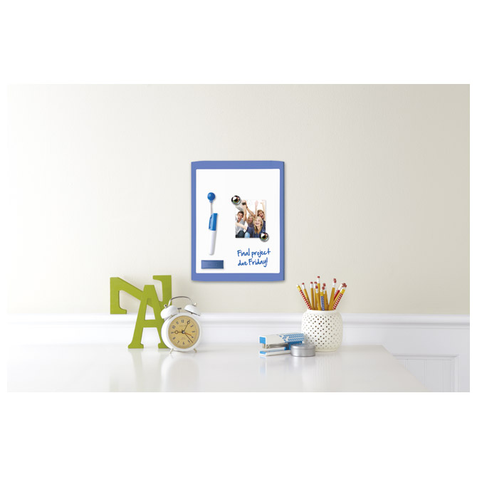 dimenzije: 21,6x28 cm brez okvirja (z barvno obrobo, razvrščeno) uporabljajo se markerji za belo tablo vsebuje: magnetno radirko za belo tablo, marker in pribor za pritrditev