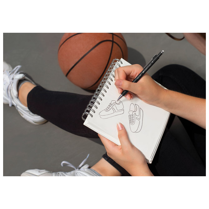 moj 0,7 mm z gumijastim trakom, ki ga je mogoče zamenjati gumijasti oprijem kovinska konica in sponka za pisanje in risanje s konico, ki se popolnoma umakne v pero sistem proti razstrelitvi min
