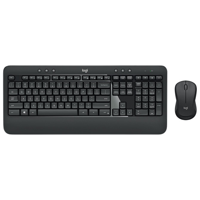 vsebuje: 1 x brezžično tipkovnico (dimenzije: 45,7 x 19,3 x 2,4 cm) teža: 633 g odporen proti razlitju (zagotavlja varnost v primeru nenamernega razlitja pijače) membrana postavitev znakov: hrv znana oblika in občutek tipk: izjemno tih nastavljiv naklon tipkovnice: : 0, 4 in 8 stopinj znaki, natisnjeni na tipkovnici, odporni proti lupljenju šifriranje brezžičnega signala stikalo za vklop/izklop Svetlobni indikator Caps Lock lučka za baterijo 2 x AAA baterije priložene) in 1 x brezžična miška (dimenzije: 6,2x3,9x1,2 cm teža: 73,5 g povezava/napajanje: gumb za vklop/izklop senzorska tehnologija: napredno optično sledenje ergonomska oblika z ojačitvami iz mehke gume prilagojeno za levičarje in desničarje 3 gumbi in kolesce 1 x AA baterija priložena) Brezžični domet: 10 m brezžična tehnologija: napredna brezžična povezava na 2,4 GHz stikala za vklop/izklop sistemske zahteve: Windows® 7, 10, 11 in novejše različice, Chrome OS™, reža USB