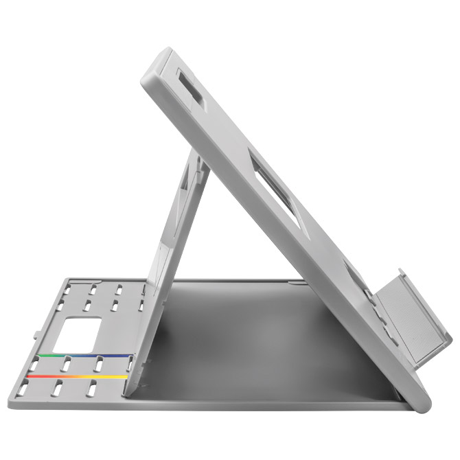 Elegantna 2-v-1 zasnova je nastavljiva po višini in kotu za izboljšanje telesne drže Spodbuja pravilno poravnavo oči in podpira udobje vratu in ramen, hkrati pa ohranja notranje komponente prenosnika hladne Protizdrsne blazinice preprečujejo, da bi stojalo zdrsnilo naprej Blazinice zagotavljajo varno namestitev vaše naprave. Tanka zložljiva zasnova je idealna za potovanja uporablja se z zunanjo tipkovnico in miško podpira 17-palčne standardne in igralne prenosnike Garancija: 2 leti. Z nastavljivim ergonomskim stojalom za prenosni računalnik in hladilno podlogo Kensington® SmartFit® Easy Riser™ Go združite ergonomske prednosti dviga zaslona s tehnološkimi prednostmi izboljšanega pretoka zraka za prenosni računalnik.