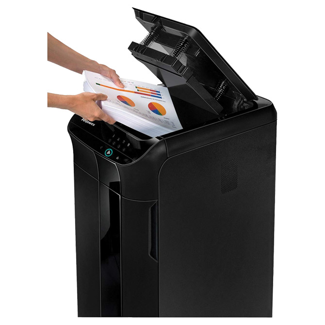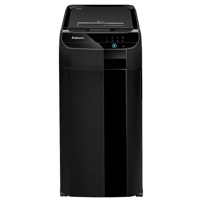 avtomatski drobilniki prihranijo 98 % vašega časa v primerjavi z ročnim drobljenjem kapaciteta avtomatskega delovanja: 350 listov ročna kapaciteta: 12 listov prostornina košare: 68 litrov Cross Cut destruction (konfeti) širina reza: 4x38 mm širina vhoda: 230 mm na kolesih stopnja varnosti: 4 enostavno upravljanje z zaslonom na dotik (touch-screen) delovni cikel: 45 minut vrsta košare: košaro je mogoče odstraniti za lažje praznjenje ima funkcijo previjanja nazaj po 2 minutah nedejavnosti se drobilnik preklopi v stanje pripravljenosti zaradi varčevanja z energijo tiho delovanje rušilca ključavnica s 4-mestno kodo za varnost delovanja razen papirja uničuje zgoščenke, sponke (ročne in strojne) ter kreditne kartice dimenzije: 390x812x553 teža: 31,3 kg 20 let garancije na nože 2 leti garancije na stroj