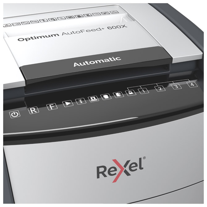 avtomatski drobilniki prihranijo 98 % vašega časa v primerjavi z ročnim drobljenjem zmogljivost avtomatskega delovanja: 600 listov ročna kapaciteta: 15 listov prostornina košare: 110 litrov Cross Cut destruction (konfeti) širina reza: 4x36 mm širina vhoda: 230 mm na kolesih stopnja varnosti: 4 ključavnica s 4-mestno kodo za varnost delovanja preprosti in intuitivni gumbi na dotik za enostavno upravljanje (kontrolna plošča na dotik) delovni cikel: 4 ure po 3 minutah nedejavnosti se drobilnik preklopi v stanje pripravljenosti zaradi varčevanja z energijo tehnologija proti zatikanju vrsta košare: košaro je mogoče odstraniti za lažje praznjenje ima okno infrardeči senzor za polno košaro tiho delovanje rušilca (55 dBA) razen papirja uničuje sponke (ročne in strojne) ter kreditne kartice dimenzije: 510x960x570 mm teža: 47 kg 2 leti garancije na nože 2 leti garancije na stroj