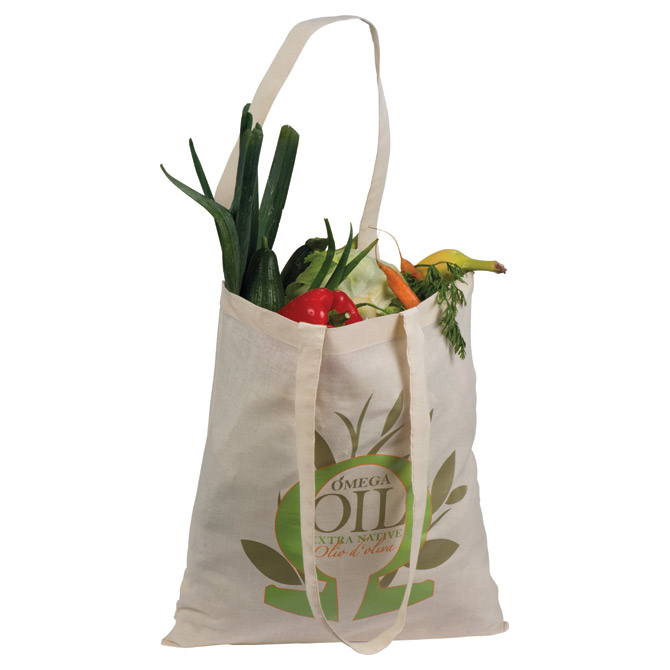 bombaž dimenzije: 37 x 41 cm material 140 g/m2 z dvema dolgima ročajema (dolžina ročajev od šiva do vrha je cca. 38 cm) pralni velikost tiskovne površine: 26×27 cm teža: 67 g