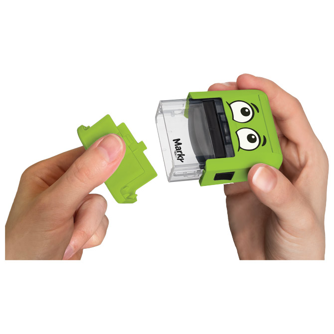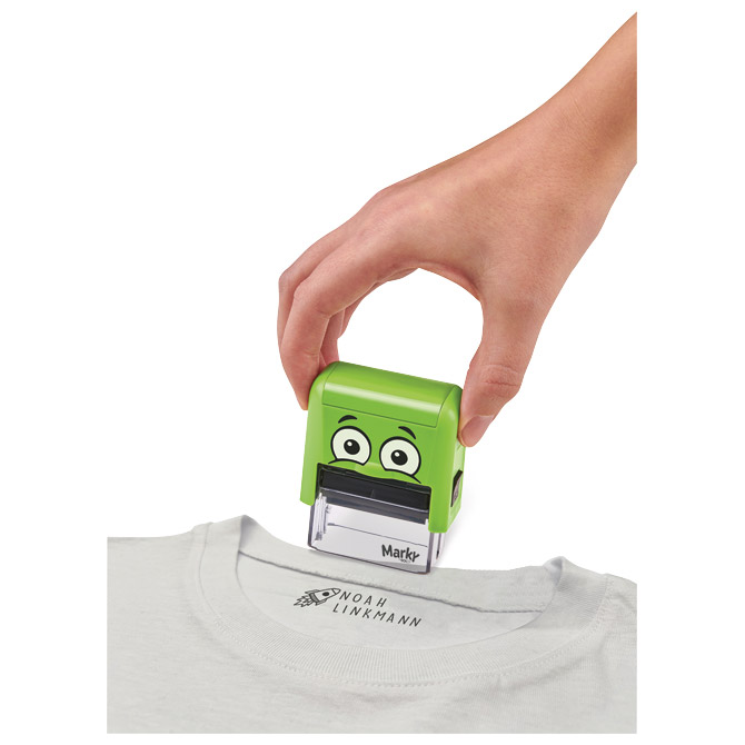 Tekstilna žigalna sestavljanka My Marky za označevanje oblačil je namenjena strankam, ki iščejo preprost in hiter način označevanja oblačil za vrtec, šolo, tabor, izlete ali za športne in druge aktivnosti. Preprosto sestavite želeno besedilo in lahko začnete žigosati oblačila ali celo druge vpojne površine, kot so šolski zvezki, svinčniki, nahrbtniki, copati, peresnice ali škatle za malico. In otroci bodo lažje prepoznali oblačila, označena z njihovo najljubšo sliko, kar bo preprečilo neželene izgube in zmedo. Posebej razvito črnilo za žige je obstojno skozi številna pranja, ne glede na to, ali je natisnjeno neposredno na svetle tkanine ali na priloženi lepilni trak na temne tkanine. Barvilo za žige MARKY ima certifikat "Odlično" s strani Dermatest Germany, kar zagotavlja vašo varnost in zaščito. Črnilo v žigu se ne posuši, zato niso potrebni posebni načini shranjevanja ali polnjenja. Če zmanjka črnila, preprosto kupite nadomestni komplet z novo blazinico za črnilo. Značilnosti 1 žig s črnilno blazinico Črn odtis Črnilo zadostuje za približno 1000 odtisov Velikost odtisa: 38 x 14 mm (zadostuje za do 3 vrstice s 15 črkami na vrstico + 1 znak/ikona) 1 meter termolepilnega traku 20 nalepk komplet črk s številkami in 12 različnimi ikonami Tekstilni žig lahko nalepite kamor koli na oblačila ali druge vpojne materiale, zato lahko z žigom označite tudi nahrbtnike, jakne, peresnice in druge šolske potrebščine iz vpojnega materiala.
