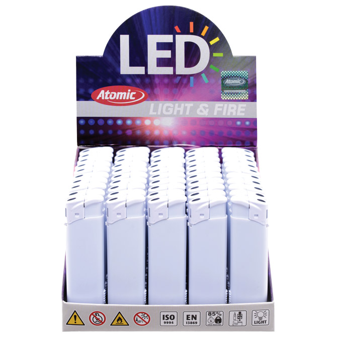 Elektronski vžigalnik mat Atomic CRF2 + LED Trober 3737001 bel