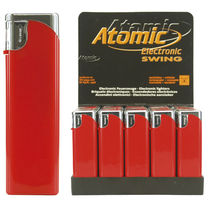 Upaljač elektronski sjajni Atomic Swing crveno/srebrni