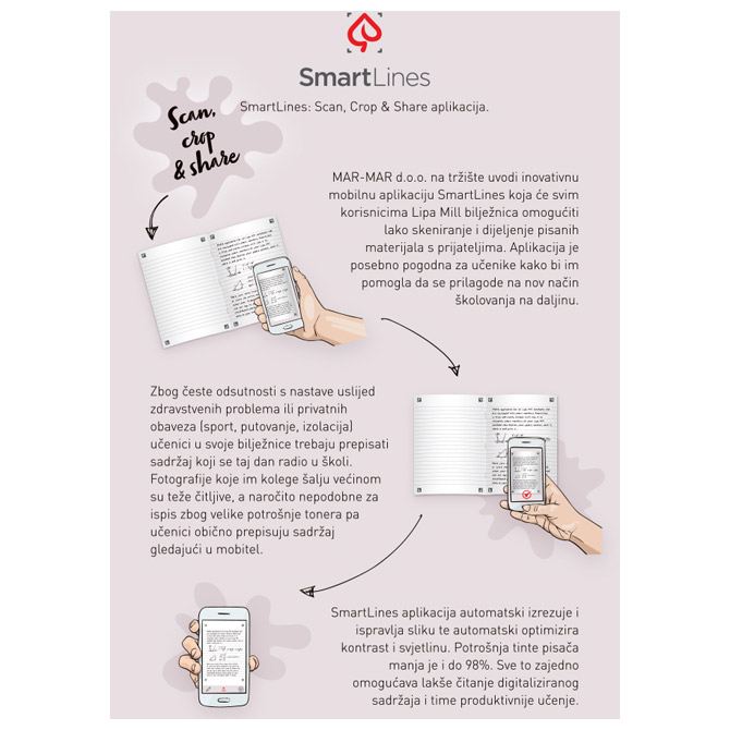 s pametnimi nalepkami, ki jih inovativna mobilna aplikacija Smartlines prepozna in omogoča enostavno upravljanje z vsebino knjižnice (shranjevanje, deljenje in tiskanje)