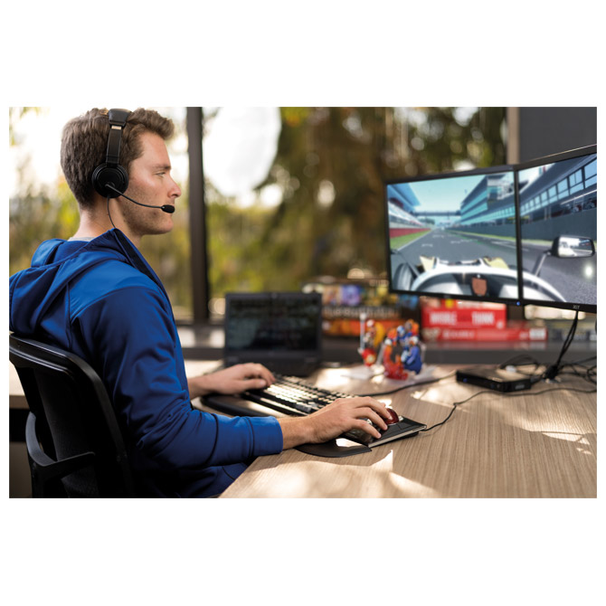 USB-A Frekvenčno območje slušalk: 20 Hz—20 kHz Občutljivost slušalk: 97± 5 dB Občutljivost mikrofona: -42± 5 dB Impedanca zvočnika: 32 ohmov ± 15 % zasnovano tako, da se prilega glavam vseh starosti Nastavljiv naglavni trak je oblazinjen. Prilagodljiv mikrofon na ročici je mogoče zasukati do 270 stopinj, penaste blazinice za ušesa pa so obložene z mehkim usnjem. Združljivo z vsemi napravami USB-A z operacijskimi sistemi Windows, macOS, iPadOS, Android in Chrome OS USB kabel dolžine 1,8 m Mikrofon z odpravljanjem šumov zagotavlja optimalno jasnost govora Varno poslušanje nastavi najvišjo izhodno moč na 94 dB, da prepreči izgubo sluha zaradi preglasnega hrupa Zmogljivi zvočniki s premerom 40 mm ustvarjajo visokokakovosten stereo zvok z globokimi basi in širokim dinamičnim razponom